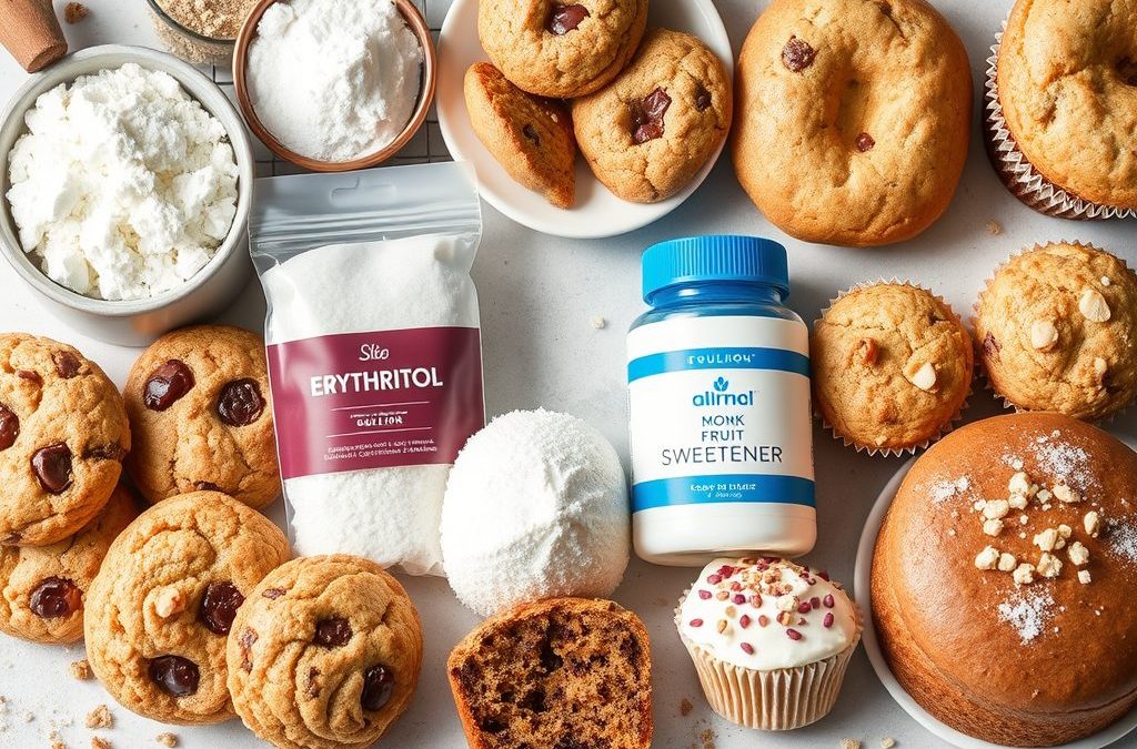 Erythritol is a sugar alcohol naturally found in fruits. It’s widely used in low-carb and keto baking because it doesn’t raise blood sugar and is nearly calorie-free. Brands like Swerve blend erythritol with oligosaccharides to enhance sweetness and improve baking performance.