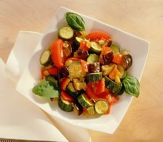2. Heat half the olive oil in a large frying pan and add the courgettes, aubergine, salt and pepper. 3.Cook, stirring occasionally, for about 10 minutes.